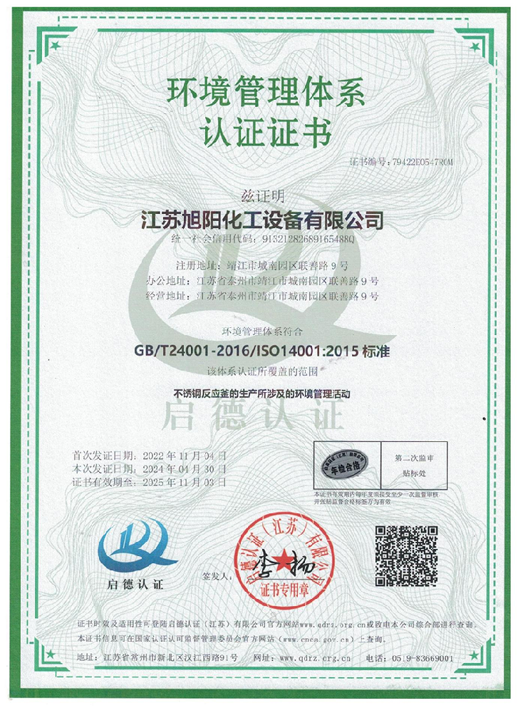 <meta name="description" content="江苏旭阳化工设备有限公司专业从事各类化工、环保、制药、发酵、食品、新材料、锂业等项目设计、制造及压力容器的生产制造。">